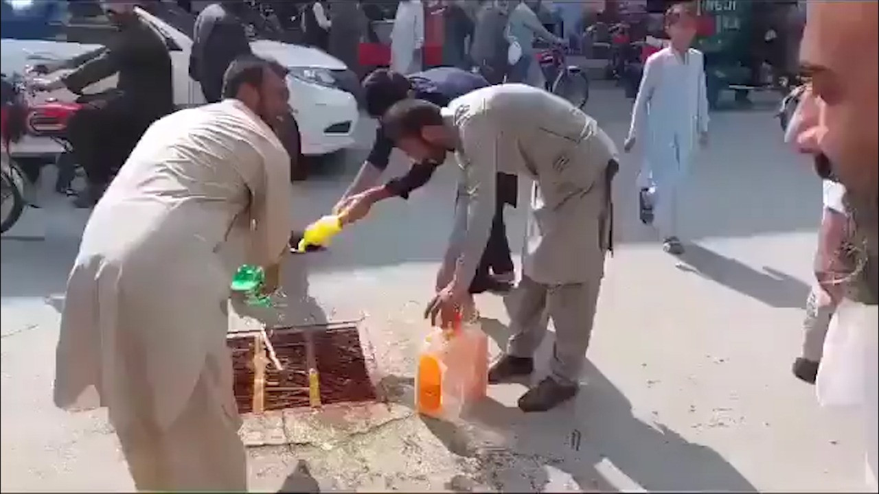 Görüntüler Pakistan'dan: İsrail'i protesto emek için Coca-Cola satın alıp döktüler