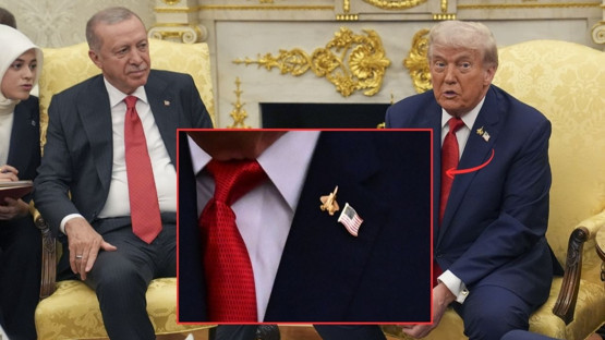 Görüşmenin en dikkat çeken kısmı ise Trum'p'ın taktığı uçak sembollü rozet oldu.