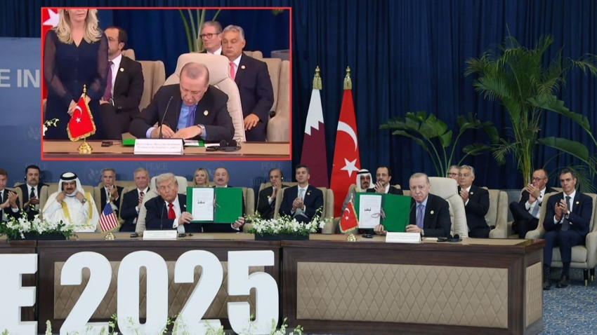 Trump, 'Gazze için kapsamlı bir belge imzalayacağız. Erdoğan'a teşekkür ediyorum. Erdoğan, çok uzun zamandan beri çok iyi bir dostum. En güçlü ordulardan biri Erdoğan'da.' dedi.