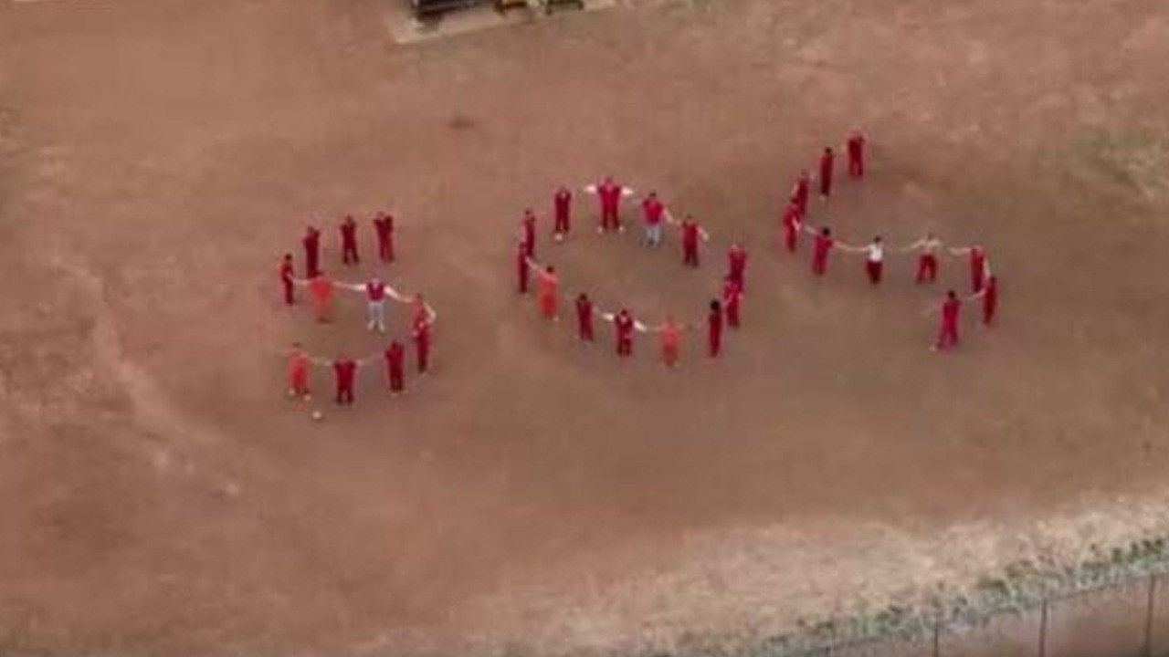Teksas'ın Anson şehrindeki Bluebonnet göçmen merkezinde tutulan mahkumlar dünyaya yardım mesajı gönderdi. Merkezin yakınlarında uçan drone kamerasını fark eden 34 tutuklu, tesisin avlusunda S.O.S harfleri oluşturarak yardım istedi.