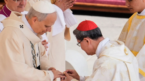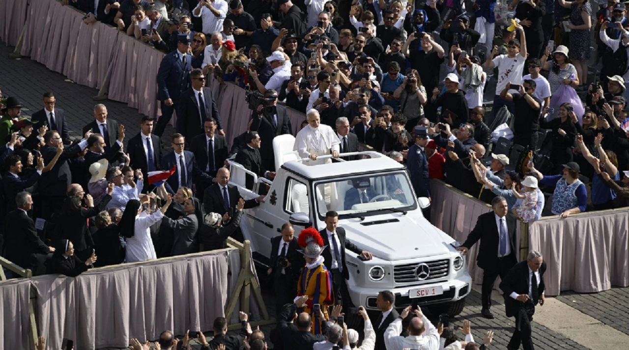 Aziz Petrus Meydanı'ndaki göreve başlama törenini on binlerce kişi yerinden takip etti.