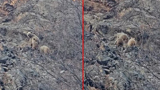 Tunceli’de kış uykusuna yatmayan ayı ailesi kameraya böyle yansıdı