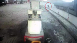 TIR'ın fırlayan tekeri, akaryakıt istasyonu pompasına çarptı! İşte o anlar...