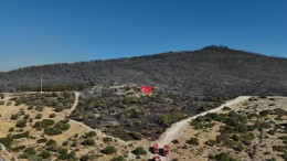 İzmir'de yanan ormanlık alan havadan görüntülendi