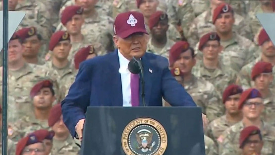 Trump'tan kurşun geçirmez cam fanusta açıklama: Ülkemiz işgal ediliyor, ABD bayrağı asla düşmeyecek