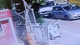 Burdur'da sürücüsünün direksiyon hakimiyetini kaybetmesi sonucu kaldırımı aşan otomobilin bankamatikten para çeken bir kişiye çarpma anı kamerada