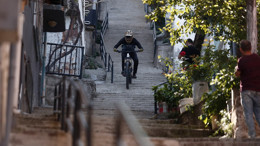 Nefes kesen anlar saniye saniye kamerada! Bisikletiyle 225 basamaktan böyle indi