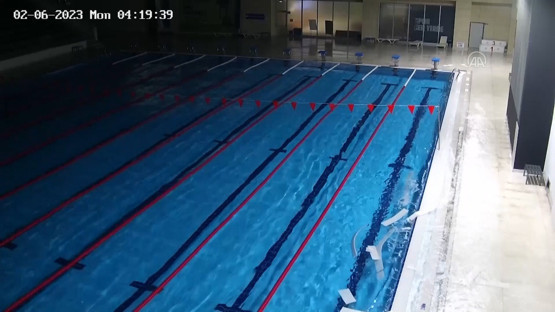Deprem anında yüzme havuzu beşik gibi sallandı! O anlar kameraya böyle yansıdı