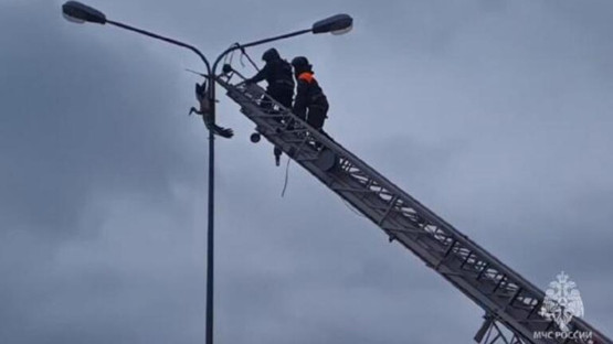 Rusya’da elektrik direğinde asılı kalan leylek, böyle kurtarıldı