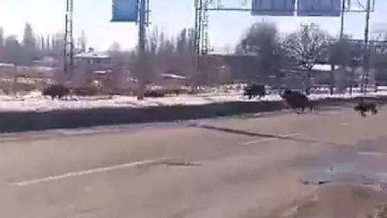 Karla kaplı Ardahan ovasında yiyecek arayan domuz sürüsü kameraya böyle yansıdı