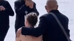 Bikinili kadınla zorla fotoğraf çektirdiler! Bu görüntülere tepki yağdı