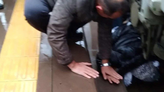 Trenle peron arasına sıkıştı. Makinistin dikkati hayatını kurtardı