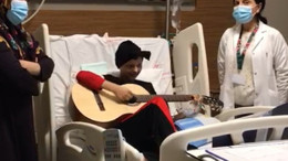 Mutluluğu gözyaşlarına boğdu! Kanser tedavisi tamamlandı, gitar çalıp doktoruyla şarkı söyledi