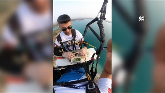 Sınırlarını zorladı: Yamaç paraşütü yapan aşçı havada suşi yaptı