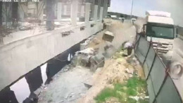 Hafriyat kamyonu inşaata böyle daldı! İşte o anlar