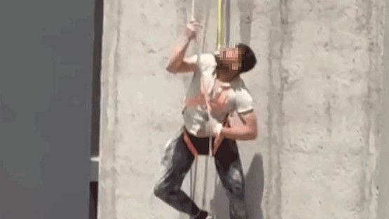Mersin’de inşaatta korku dolu anlar! İskele halatı koptu, işçi havada asılı kaldı