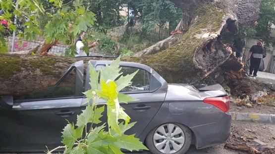 150 yıllık ağaç, otomobilleri hurdaya çevirdi