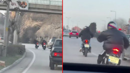 Motosikletlilerin tehlikeli yolculukları kamerada