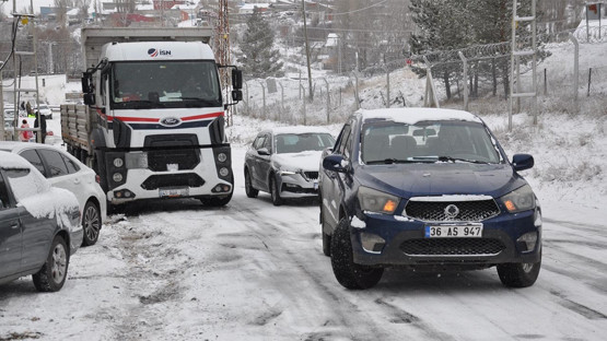 Sürücülerin zor anları kameraya böyle yansıdı: Kars’ta yollar buz pistine döndü!