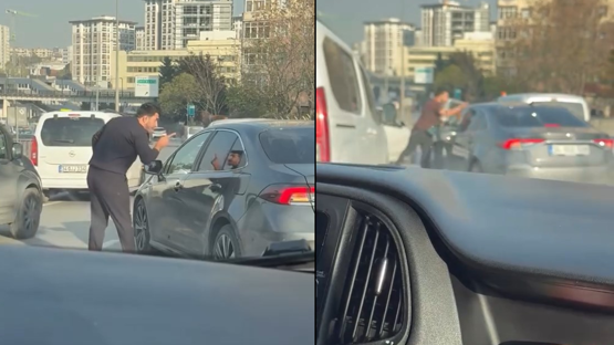 Trafikte dehşet anları! Şerit tartışmasında korku dolu anlar