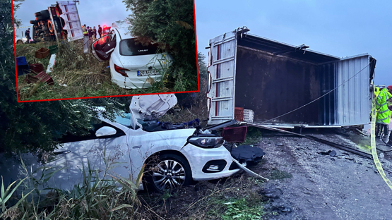 Katliam gibi kaza! Kamyonet otomobille çarpıştı