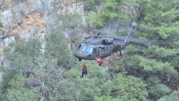 Yamaçta mahsur kalan dağcı helikopterle kurtarıldı