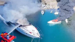 Marmaris'te korkutan yangın! Motoryat cayır cayır yandı