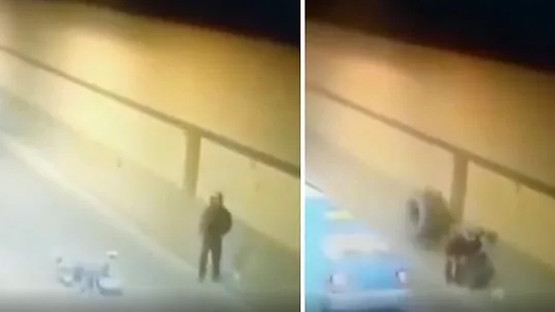 İzleyenler şaşkınlıklarını gizleyemedi! Motorcuya çarpan kamyon lastiği hırsını alamayıp geri döndü, tekrar aynı motorcuya çarptı...