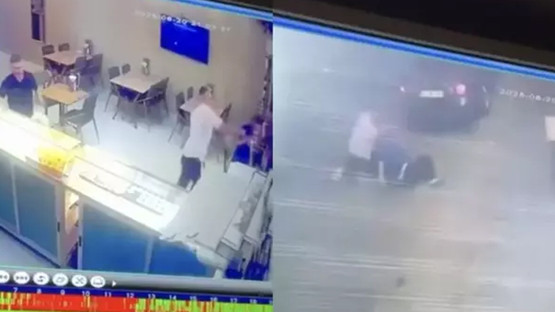 Adana'da pastane sahibini tabancayla yaralayan kurye, çalışanlar tarafından tekme tokat darp edildi. O anlar saniye saniye böyle görüntülendi