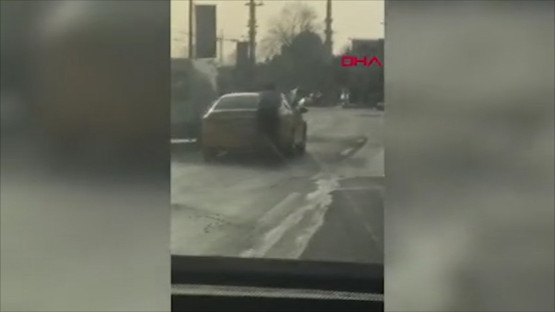Lüks otomobile asılan patenli çocukların tehlikeli yolculuğu