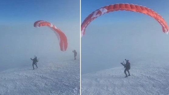 Ağrı Dağı’nın zirvesinde nefes kesen anlar! 5 bin 137 metreden yamaç paraşütüyle böyle atladı