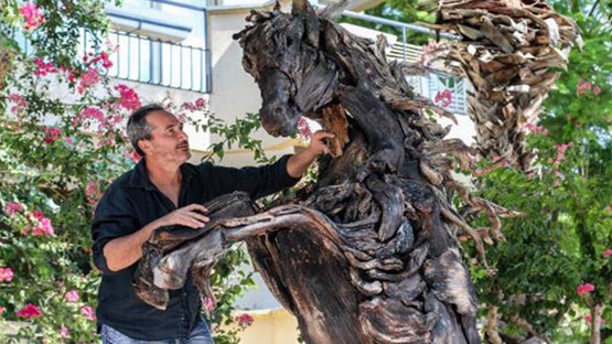 Antalyalı Adnan Ceylan, Manavgat'taki yangında zarar gören ağaçlardan at yaptı!
