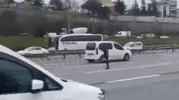 TEM'de akıl almaz hareketler! Vızır vızır geçen araçların arasından karşıya geçmeye çalıştı