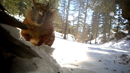 Pençe-Kaplan bölgesinde aç ve susuz sincabı, korucular besledi