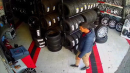 Güpegündüz iş yerini böyle soydu! Adana'da lastik tamircisine giren bir kişi, havalı lastik tabancasını böyle çaldı. İşte o anlar...