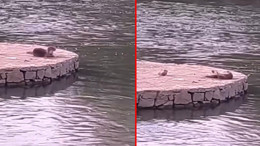 Samsun'da ilginç anlar: Su samurlarının kavgası kameraya böyle yansıdı