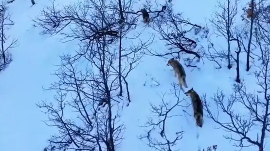 Tunceli'de belgeselleri aratmayan görüntüler: Karla kaplı milli parktaki kurtlar sürü halinde görüntülendi