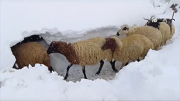 Van'da yoğun kar! Hayvanlarını beslemek için tünel kazdı
