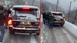 Uludağ'da hareketli anlar kamerada: Buzlu yolda kayan cipi durdurmak için bakın ne yaptılar