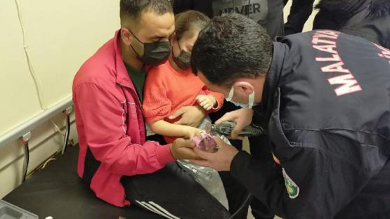 Malatya'da, Zeynep Yılmaz'ın (5) oynarken su matarasına sıkıştırdığı parmağı, doktor gözetiminde itfaiye ekipleri tarafından kurtarıldı