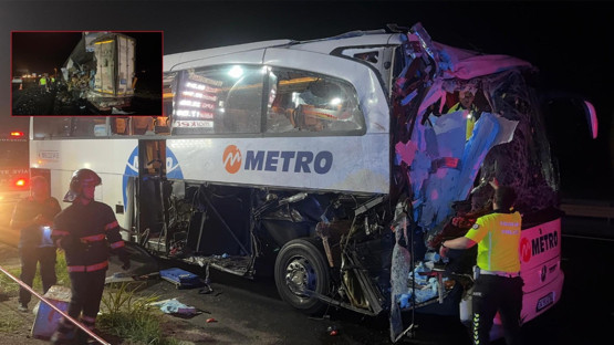 Yolcu otobüsü TIR'a çarptı!  Can pazarının yaşandığı kazada çok sayıda yaralı var