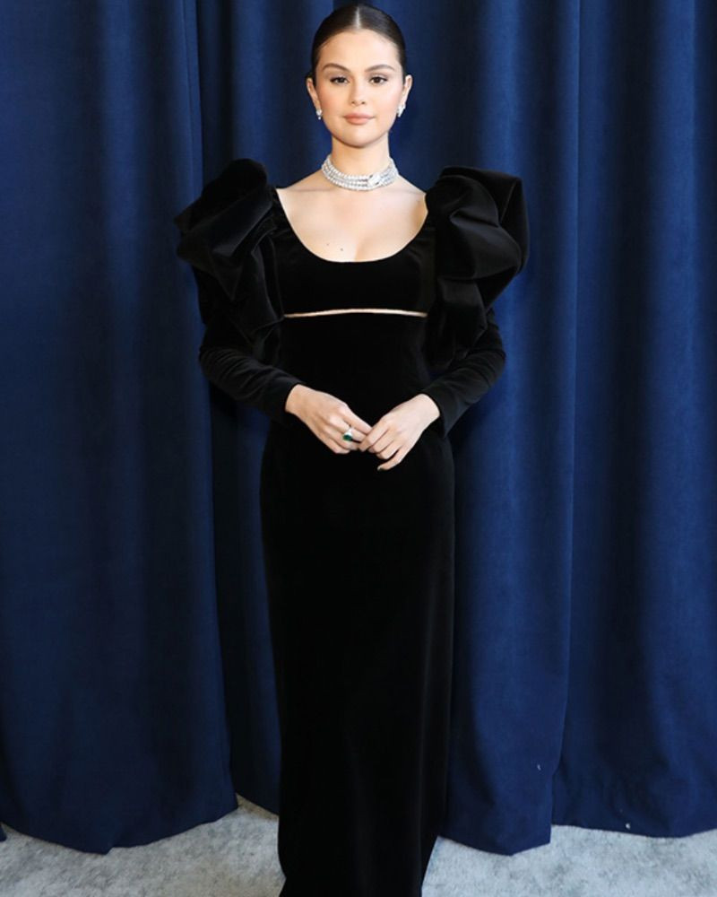 'The Only Murders in the Building' adlı yapımda rol alan Selena Gomez, törene ‘Oscar de la Renta’ elbisesiyle damga vurdu. Şarkıcı, stilini siyah stiletto ayakkabıları ve 1 milyon dolar değerinde Bulgari imzalı bir kolye ile tamamladı.