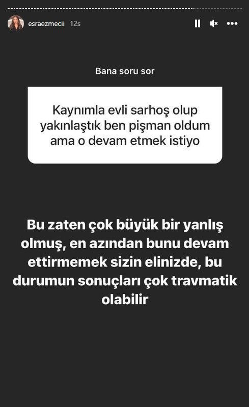 Ezmeci'ye bu defa bir takipçisi, "Kaynımla sarhoşken yakınlaştık. Ben pişman oldum ama o devam etmek istiyor." diye yazdı. Ezmeci'nin buna yanıtı ise, "Bu zaten çok büyük bir yanlış olmuş. Uzak durmak iyi olur" oldu. Esra Ezmeci son günlerin Haydar Dümen'i olarak anılıyor.
