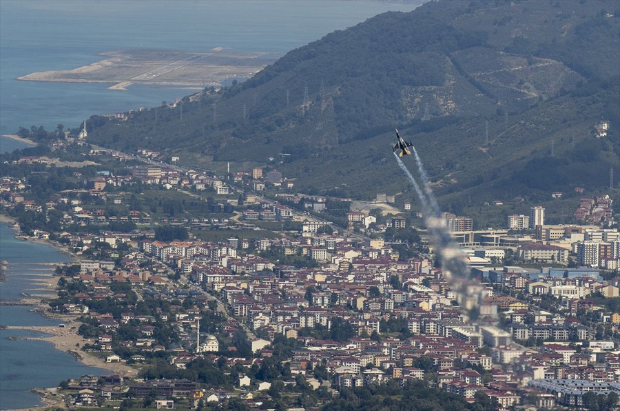Türk Hava Kuvvetleri akrobasi timi SOLOTÜRK, Ordu'da düzenlenen TEKNOFEST KARADENİZ kapsamında gösteri uçuşu gerçekleştirdi. SOLOTÜRK, Ordu'da bugün açılışı gerçekleştirilen TEKNOFEST Havacılık, Uzay ve Teknoloji Festivali çerçevesinde gösteri sundu. Ordu'nun Altınordu ilçesi sahili üzerindeki gösteri uçuşu yoğun ilgi gördü. Sahilde toplanan vatandaşlar, yapılan akrobasi hareketlerini cep telefonlarıyla kaydetti. Gösteriyi ilgiyle takip edenler, alandaki coşkuya alkışlarla destek verdi. SOLOTÜRK, yaklaşık 30 dakika süren uçuşun ardından vatandaşları selamladı. TEKNOFEST, 31 Temmuz Pazar günü sona erecek.