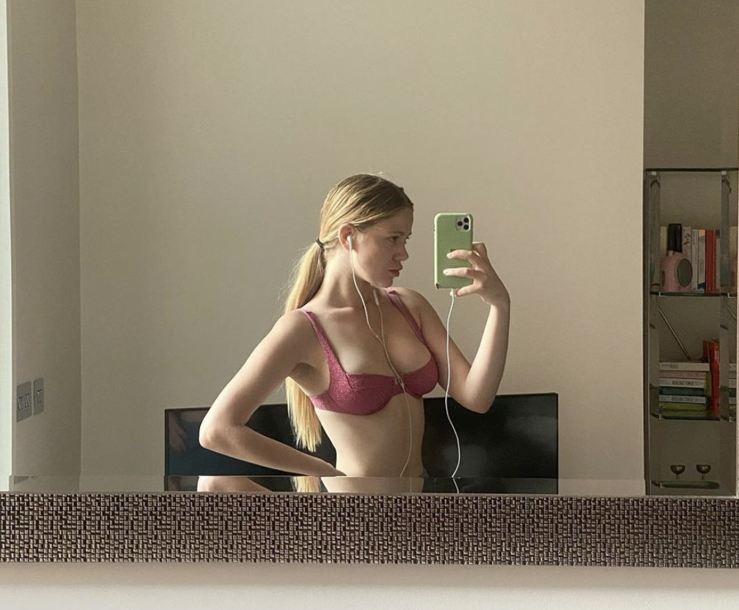 Genç yıldız bu sefer de beyaz transparan gömleğiyle poz verdi.