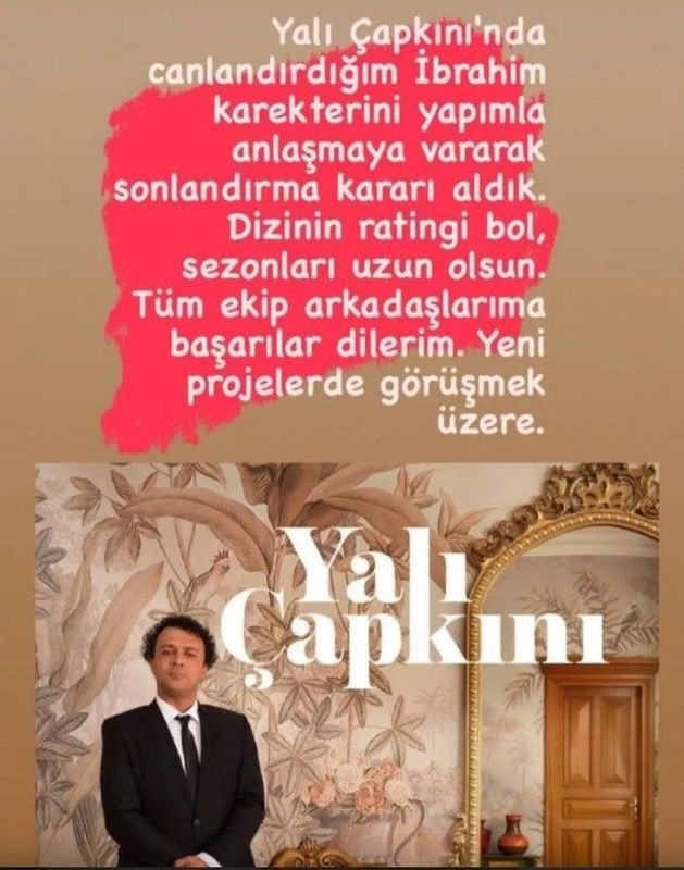 Cansu Fırıncı yaptığı paylaşımda, "Yalı Çapkını dizisinde canlandırdığım İbrahim karakterini yapımla anlaşmaya vararak sonlandırma kararı aldık. Dizinin ratingi bol, sezonları uzun olsun. Tüm ekip arkadaşlarıma başarılar dilerim. Yeni projelerde buluşmak üzere." açıklamasıyla diziye veda ettiğini duyurdu.