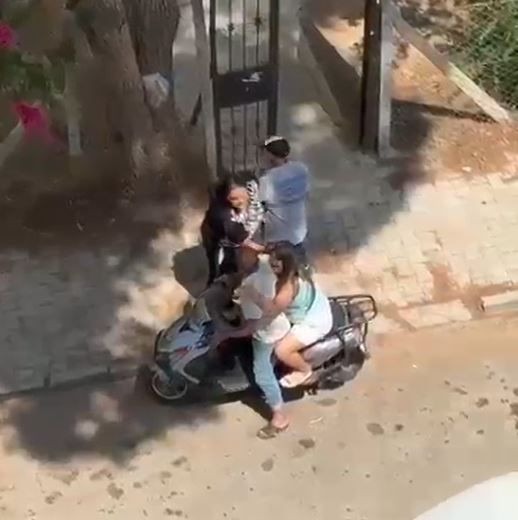 Kızın yardımına koşanlar, anneyi de sakinleştirmeye çalıştı. Anne tehditlerini sürdürünce bu kez bir kişi, motosiklete bindirdiği kızı, olay yerinden uzaklaştırmak isterken, çocuğu saçından yakalayan kadın ise onu çekip düşürmeye çalıştı.