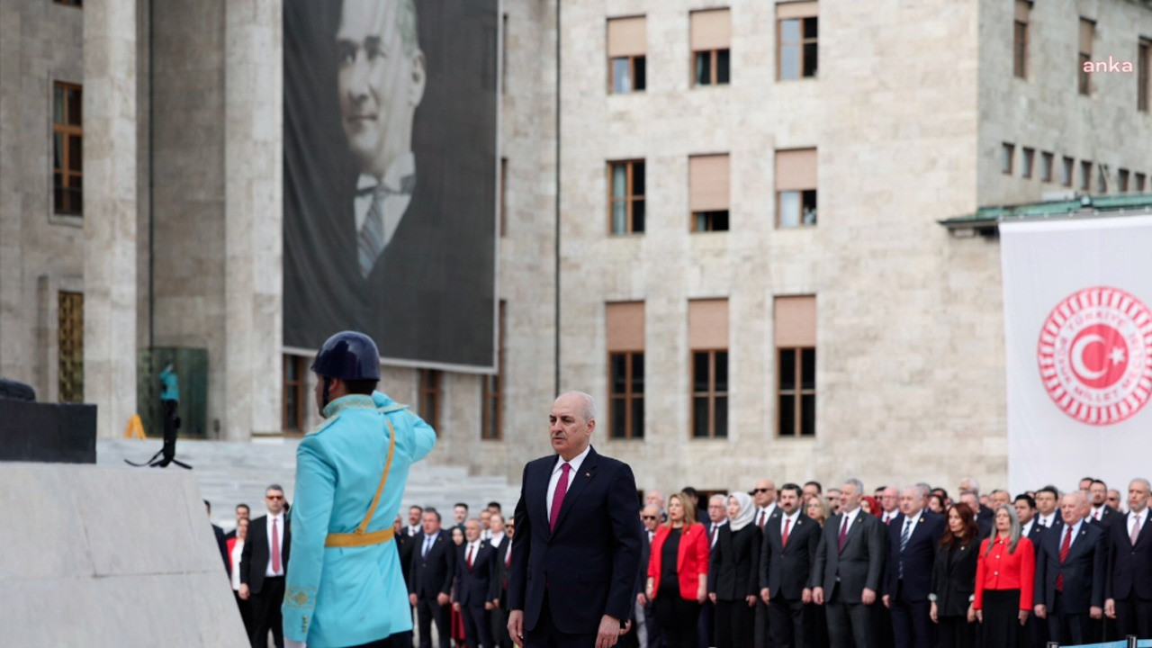 TBMM Başkanı Numan Kurtulmuş, 23 Nisan Ulusal Egemenlik ve Çocuk Bayramı ile TBMM’nin açılışının 105. yıl dönümü kutlamaları kapsamında Meclis’teki Atatürk Anıtı'na kırmızı-beyaz karanfillerden oluşan çelenk bıraktı.