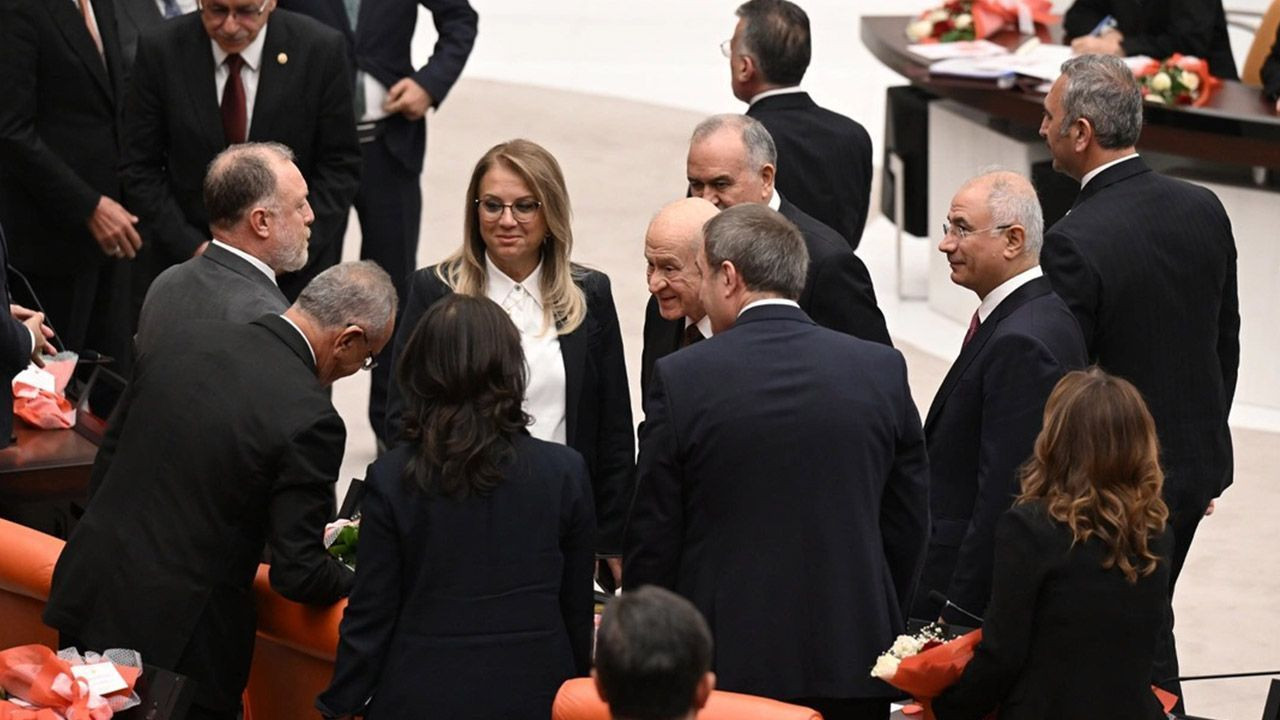 ANKA Haber Ajansı, MHP Genel Başkanı Devlet Bahçeli’nin, TBMM’de 1 Ekim 2024’teki yeni yasama yılı töreninde, DEM Parti Eş Genel Başkanı Tuncer Bakırhan ve milletvekilleriyle tokalaşmasıyla başlayan sürecin ardından yaşananları derledi.