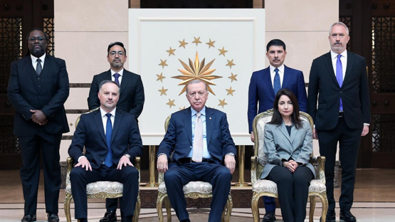 Beştepe'deki kabulde Belarus Büyükelçisi Anatoly Glaz, Brezilya Büyükelçisi Gilda Motta Santos Neves, Ekvador Büyükelçisi Pedro Vintimilla, Gürcistan Büyükelçisi Archil Kalandia ve Vietnam Büyükelçisi Dang Thi Thu Ha, Cumhurbaşkanı Erdoğan'a güven mektuplarını sundu.